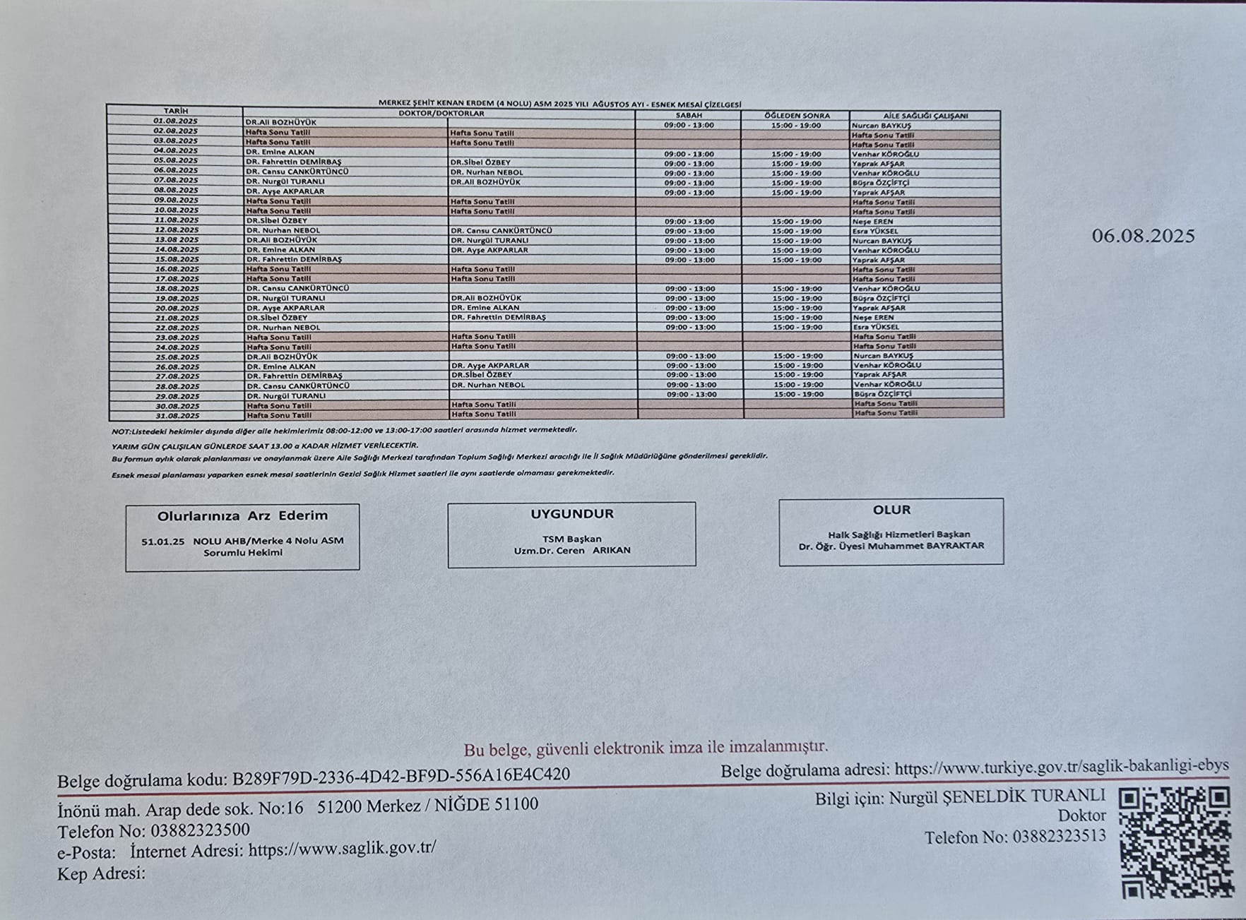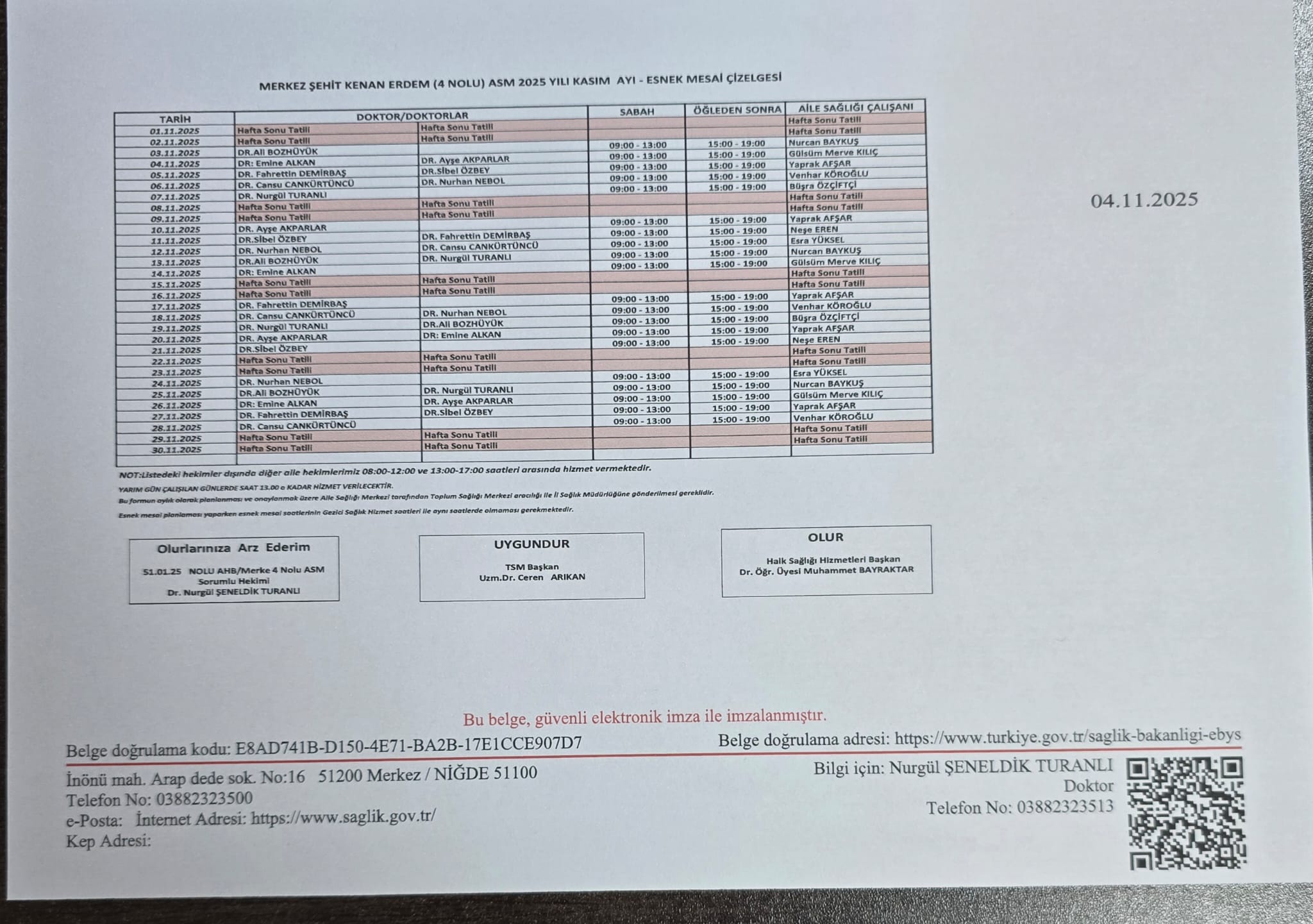 Aile sağlığı merkezimizde esnek mesai uygulanmaktadır.